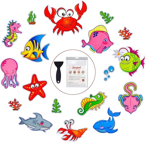 Secopad Lot de 18 autocollants antidérapants pour baignoire, douche et baignoire avec grattoir de qualité supérieure