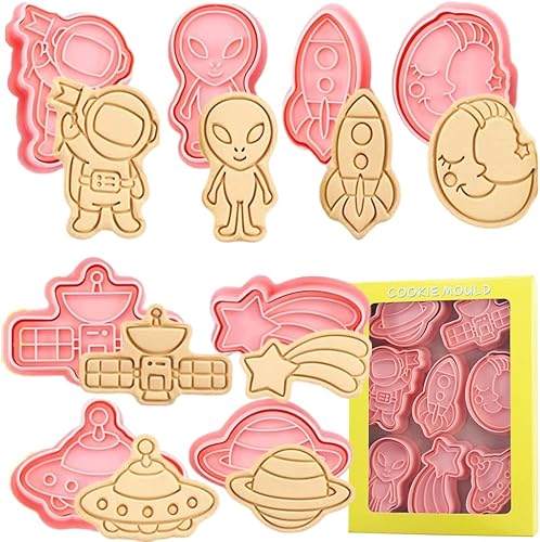 Lot de 8 emporte-pièces en plastique sur le thème de l'espace - Moules à biscuits amusants pour la fabrication de biscuits, glaçages, pâtisseries et autres décorations