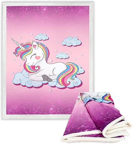 Tex family Plaid Couverture Polaire Sherpa Fantasy HD (Licorne Rose)
