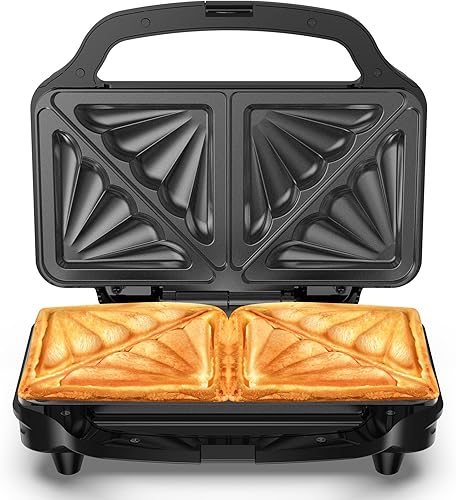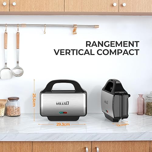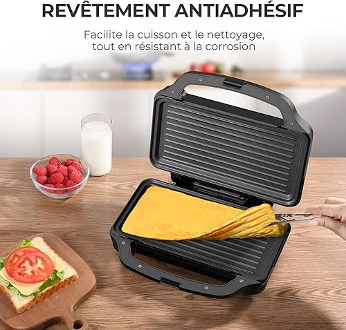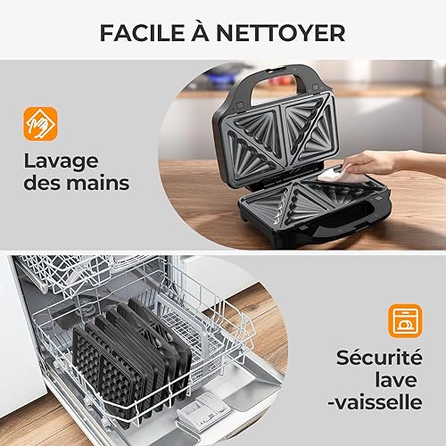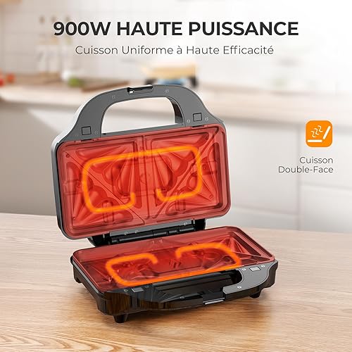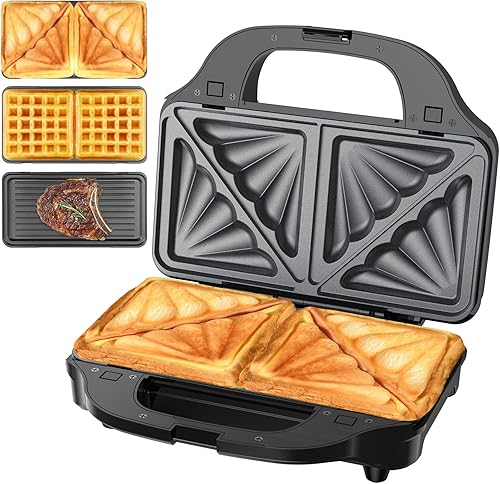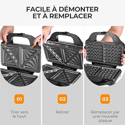 OSTBA APPLIANCE Appareil à Croque Monsieur 3 en 1 avec 3 Plaques Antiadhésives et Interchangeables (Gaufrier, Grill, Sandwich, Croque Monsieur), Affichage LED et Poignée Cool Toucher, 900W, Noir