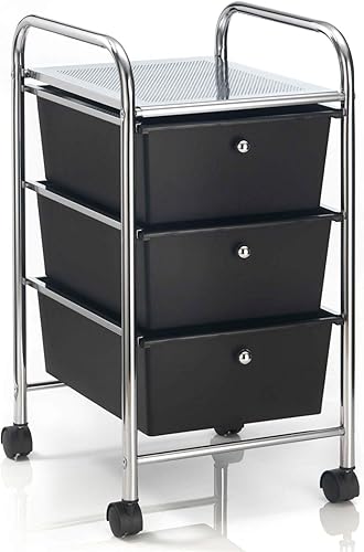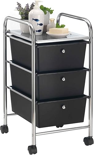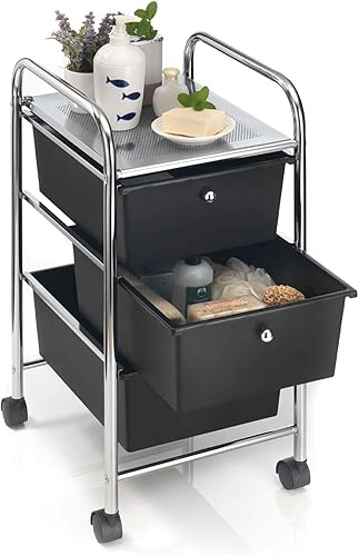 IDIMEX Caisson sur roulettes GINA Chariot avec 3 tiroirs en Plastique Noir et 1 étagère, Meuble de Rangement pour Salle de Bain en métal chromé