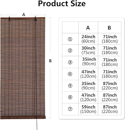 Cy.curtain bright Rideau à Rouleau en Bambou pour intérieur, Rideau en Bambou pour Balcon, Store en Bambou Enroulable pour Portes et fenêtres 90 x 180 cm