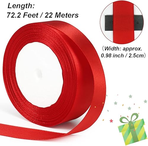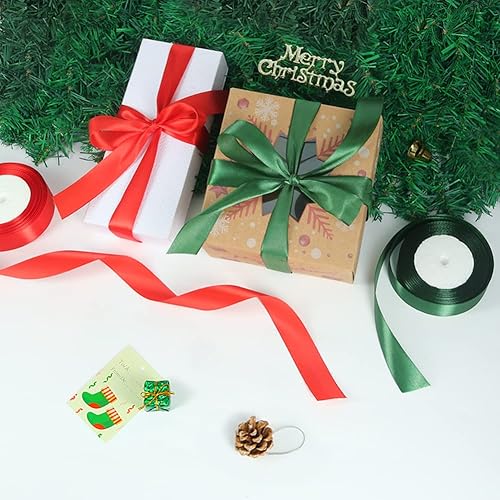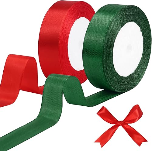 tenn well Ruban Satin Vert Rouge, 25 mm x 44 m Ruban pour Décoration de Mariage, l'artisanat de Décoration de la Maison, Fête Gâteau, Emballage Gâteau, Coffrets, Bouquet