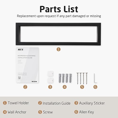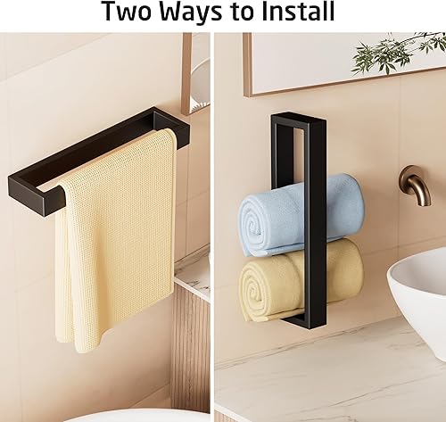 KES Porte Serviette Salle de Bain Anneaux Porte-Serviettes Porte Serviette Murale Acier Inoxydable SUS304 Style Contemporain Noir Mat, A23080-BK