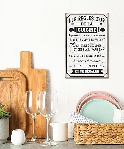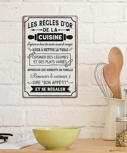 Putuo Decor Plaque Métallique Règles d’Or de la Cuisine, Panneau Déco Vintage en Aluminium, Idéal pour Cuisine et Salle à Manger, 30x20 cm