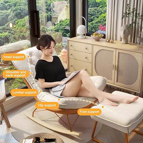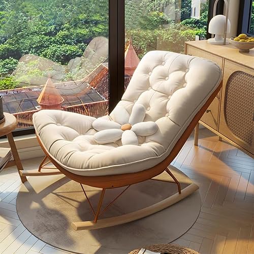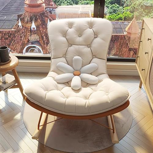 NRNQMTFZ Fauteuils de Salon à Bascule,Rocking Chair Adulte Interieur,Fauteuil de canapé pour Balcon,Fauteuil à Bascule en Velours Rembourré,pour Salon, Chambre, Balcon(White)