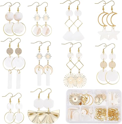 SUNNYCLUE 1boîte 10Paires de Boucles d'oreilles Coquillages à Faire Soi-Même Pendantes Kit de Démarrage Breloques Coquillage Soleil Océan par la mer Étoile Breloques Perles L'été en Forme de Larme