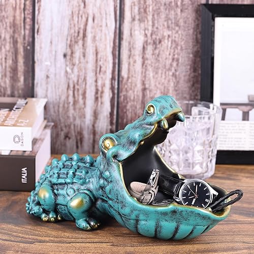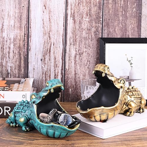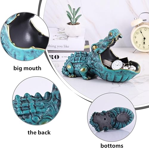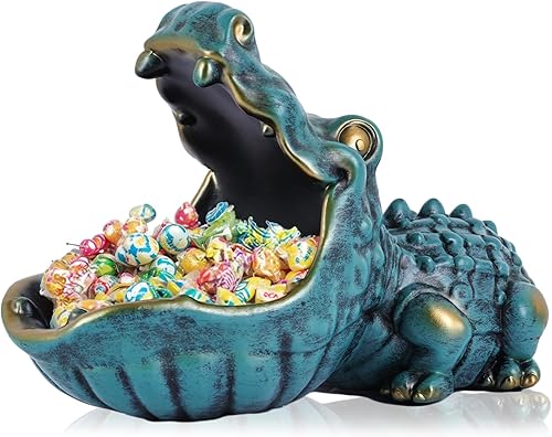 PlivBloom Plat à bonbons amusant, bol à bonbons en forme d'alligator pour animaux, bol à bonbons unique pour bureau, décoration hippopotame et décoration alligator, bol à clés pour table d'entrée,