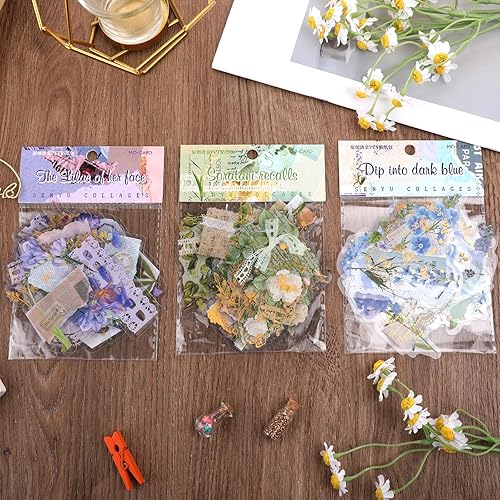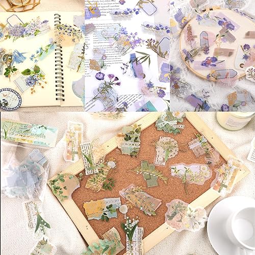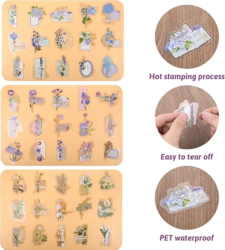 Lot de 90 autocollants floraux transparents esthétiques pour scrapbooking, loisirs créatifs, vintage, fleurs séchées, autocollants botaniques, autocollants pour planificateur, ordinateur portable,