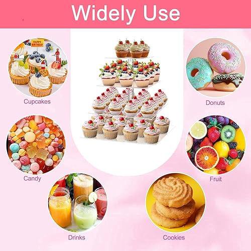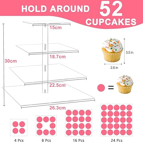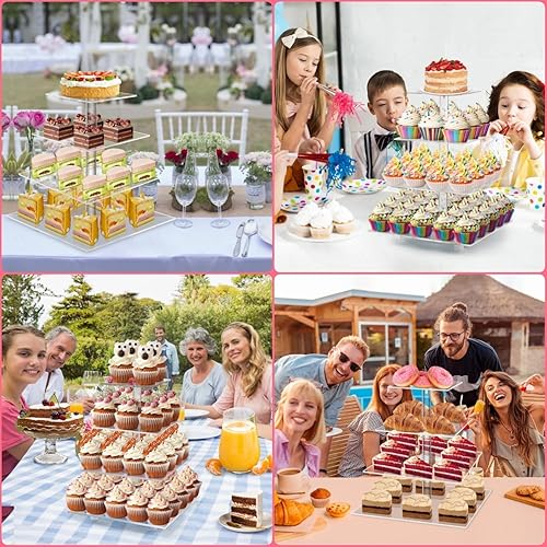 LATERN 4 Niveaux Présentoir à Cupcakes, Carré Tour à Gâteaux en Acrylique Présentoir Transparent à Étages Support à Desserts Réutilisable pour Mariage Anniversaire Baby Shower Halloween Fête