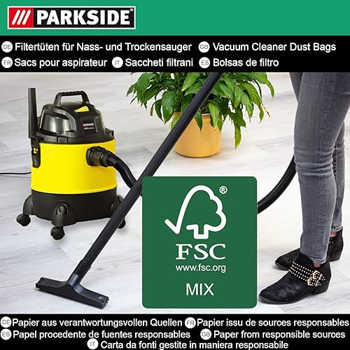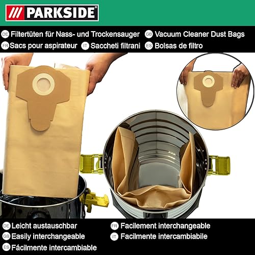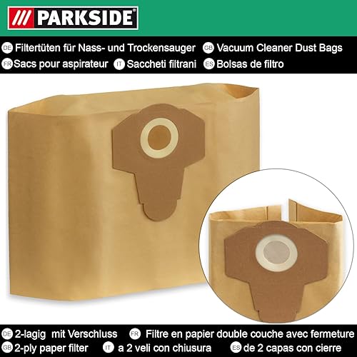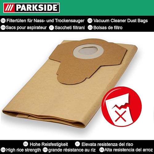 Lot de 5 sacs à poussière - Pour aspirateur à déchets secs et humides Parkside PNTS 1250 - Capacité : 20 l