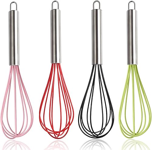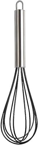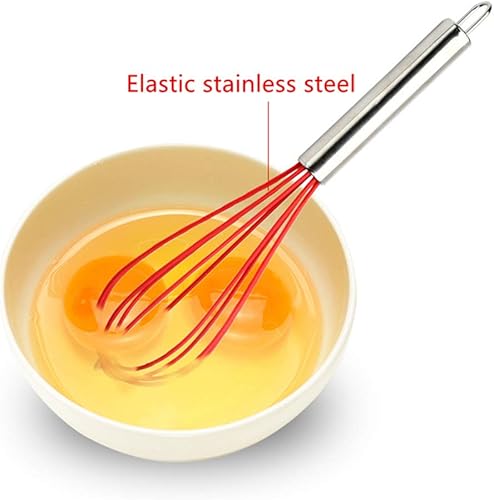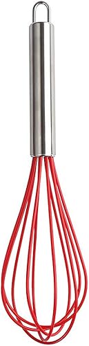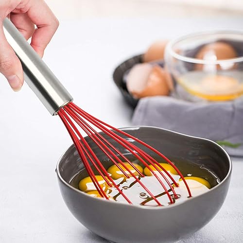 Batteur à œufs manuel en acier inoxydable et silicone pour mélanger et mélanger - Rouge