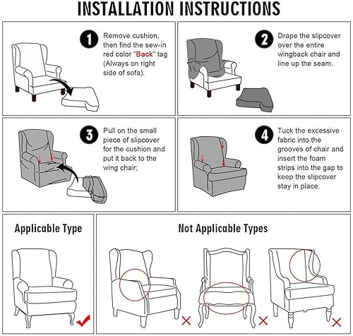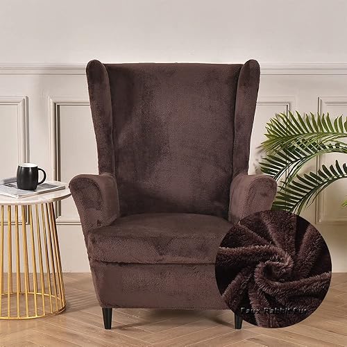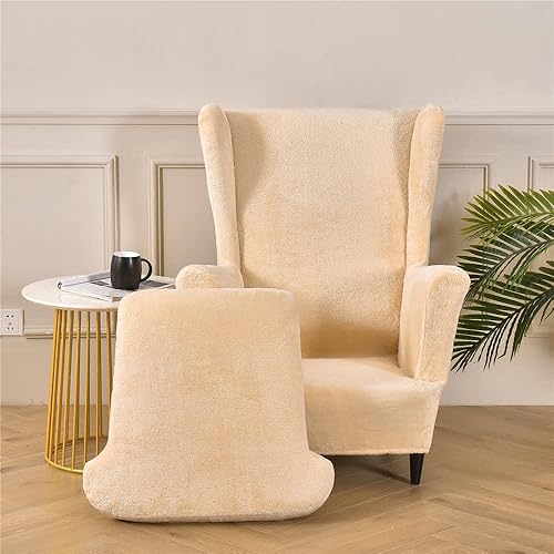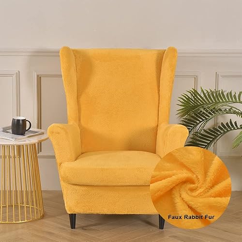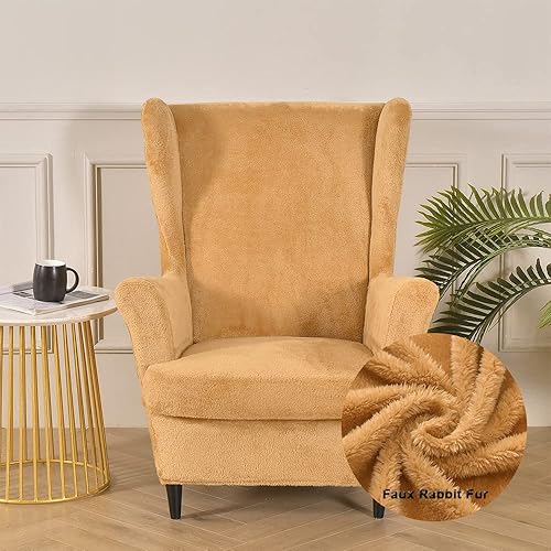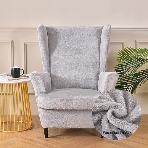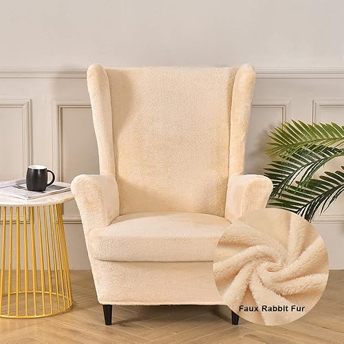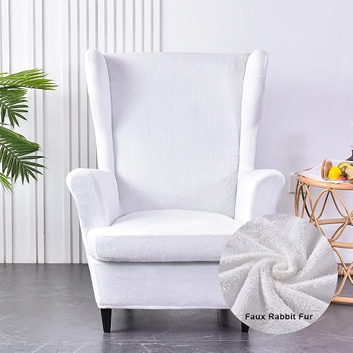 Highdi Housse de Fauteuil à Oreilles Extensible 2 Pièces Couverture de Fauteuil avec Housse de Coussin en T, Housse de Fauteuil pour Salon, Hôtel, Chambre (Fausse Fourrure de Lapin Blanche)