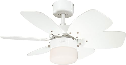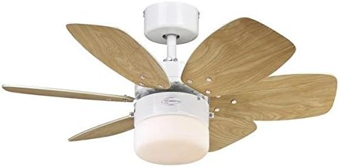 78788 Ventilateur de plafond d'intérieur à six pales et une lampe Flora Royale de 76 cm, finition chrome satiné avec verre opale dépoli
