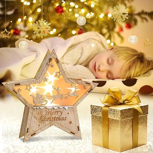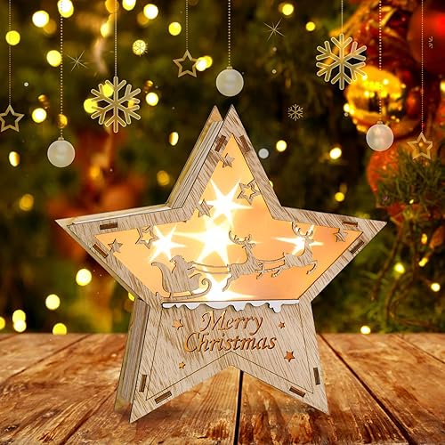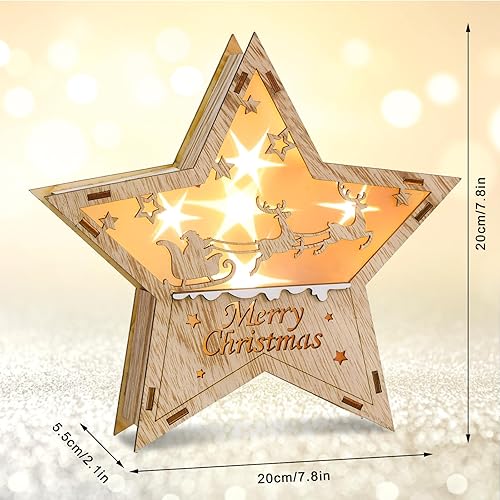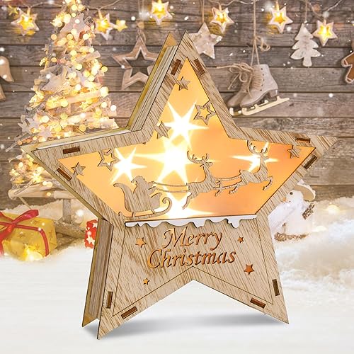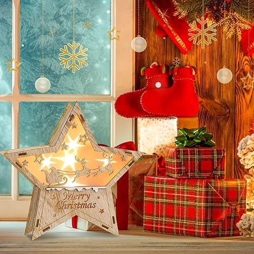 Aragallant Lumières de Noël en Bois à LED - Étoile, Élan et Décorations pour Fenêtre, Intérieur et Balcon
