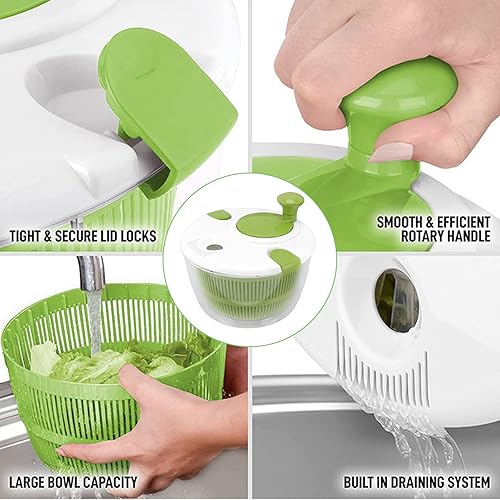 Tyenaza Essoreuse à Salade Lave-légumes, Essoreuse à Salade à manivelle Multifonctionnelle Essoreuse à légumes Laitue Verte Séchoir Outil de Cuisine pour la Cuisine à Domicile