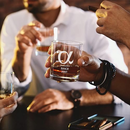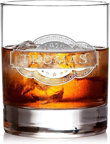 AMAVEL Verre à Whisky avec Gravure Personnalisée Nom et Année, Banderole, 320 ML