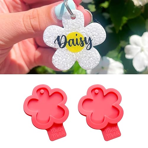 MelbMolds Moule en silicone à résine époxy en forme de fleur à 5 pétales - 2 pièces - Créez des porte-clés floraux, des tags pour animaux de compagnie, des boucles d'oreilles et des bijoux DIY