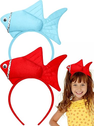 Kotkiddy Bandeaux poisson rouges et bleus, bandeaux style poisson mignon pour enfants, accessoires de costume poisson pour fêtes
