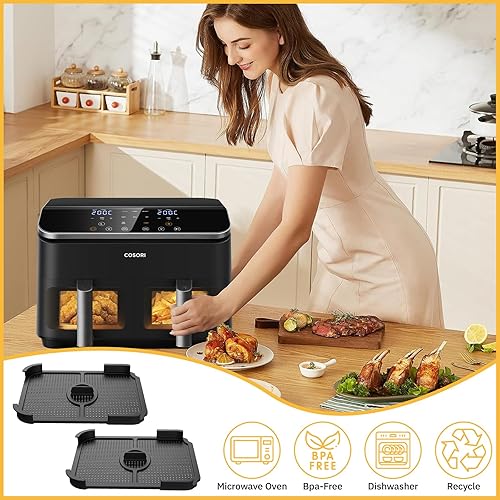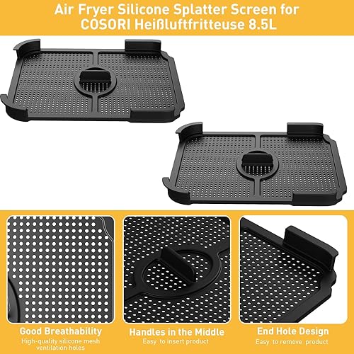 2 Pcs Grille Anti Projection pour Cosori Air Fryer 8,5L, Réutilisable Accessoires Air Fryer Moule Silicone Air Fryer,Moule Anti Eclaboussure pour Cosori Air Fryer 8,5L (nior)