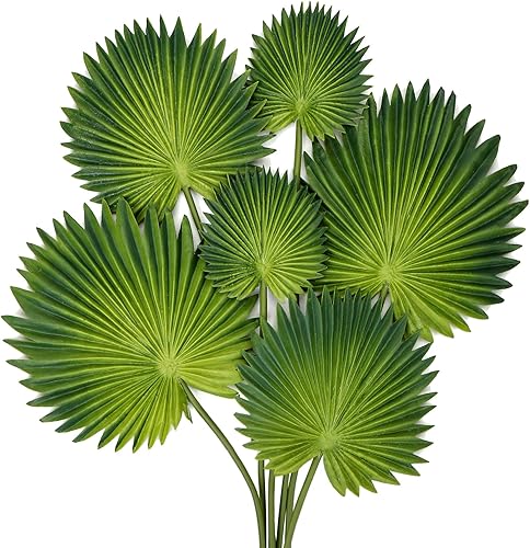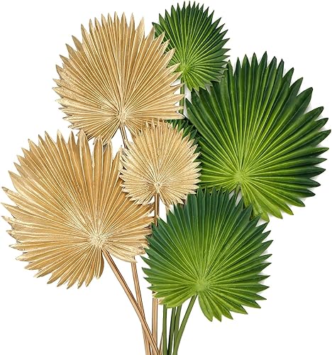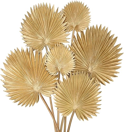 Briful Lot de 6 feuilles de palmier artificielles dorées tropicales en polyuréthane avec tige flexible pour arrangement floral, jardin, fête, bureau