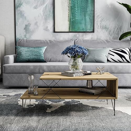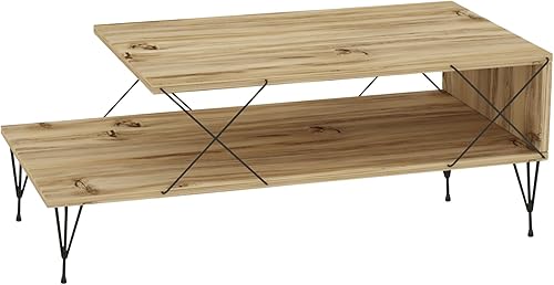 [en.casa] Table Basse de Salon avec Étagère Table d'Appoint Style Intemporel pour Bureau Bout de Canapé Panneau de Particules Métal 100 x 50 x 40 cm Effet Bois Noir