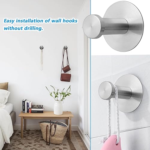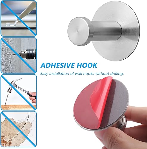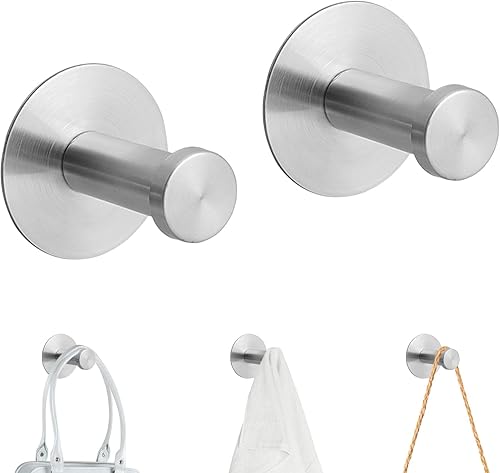 Fyihoxi 2 PCS Crochet Adhesif Mural, Crochet Adhesif Mural en Acier Inoxydable Ø 50mm, Crochet Adhésif Charge Lourde, Porte Manteau Mural Sans Percage pour Cuisine, Salon et Bureau