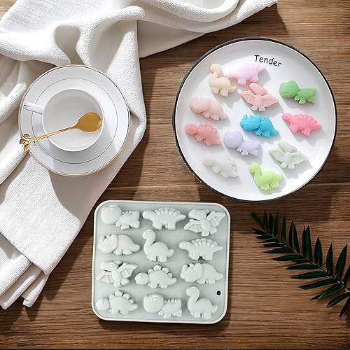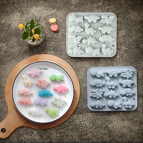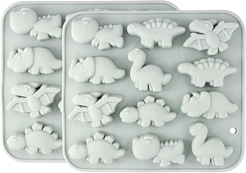 Dokeno Moule Chocolat, 2 PCS Moule En Silicone En Forme Dinosaure Pour Glaçons, Moules de Qualité Alimentaire pour Gateau, Moule Animau pour Bonbons, Pudding, Petit Savon (Bleu, 16,6 X 14,7 X 1,8 CM)