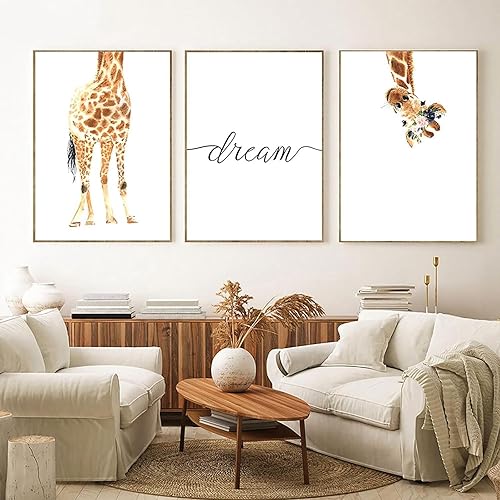 AWKFHF Impression sur Toile Dessin Animé Minimaliste pour Enfant de Rêve de Girafe Tableau Décoration Murale,Toile Peinture Affiche Chambre SalonArt Décoration (3X30X40CM,sans Cadre)