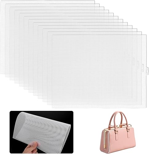 Lot de 12 toiles en plastique - 33,5 x 26 cm - Grille en plastique - Point de croix - Toile - Grille en plastique - Accessoires de bricolage pour travaux manuels, projets de couture, sac fait main