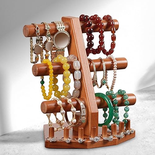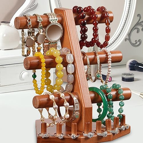 Qianly Porte-bracelet en bois, support à bijoux décoratif en bois à 3 niveaux, présentoir de bracelets à vendre pour dames