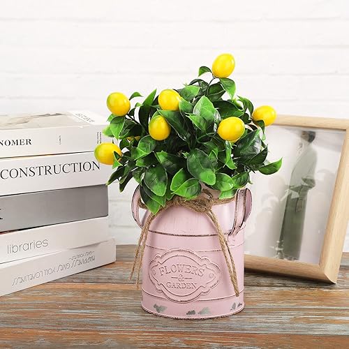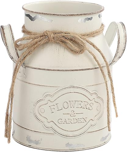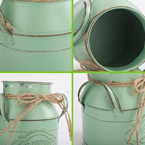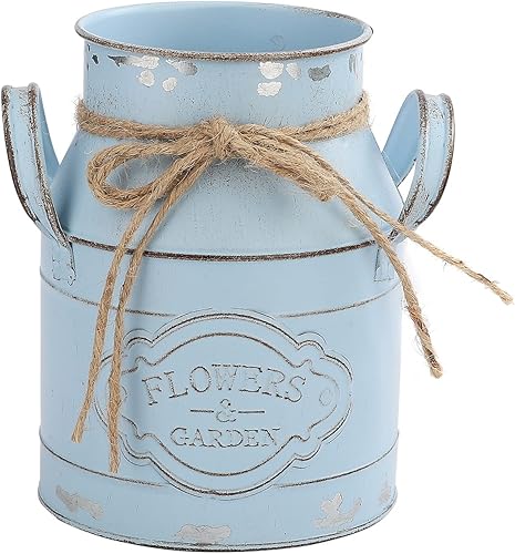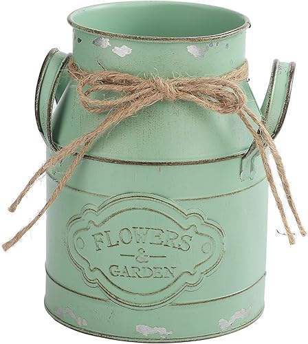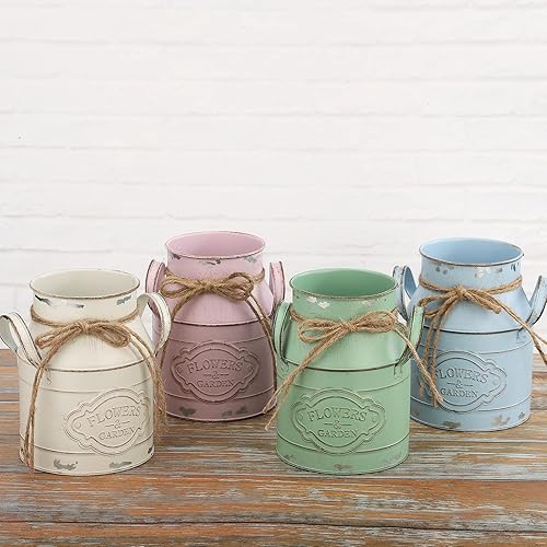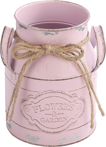JUKIDS Vase vintage en métal rose en forme de seau en étain, design rustique en canette de lait, centre de table, décoration d'intérieur