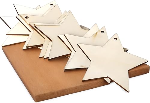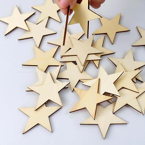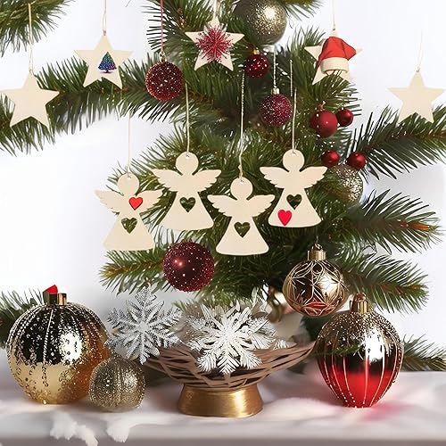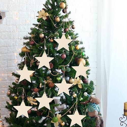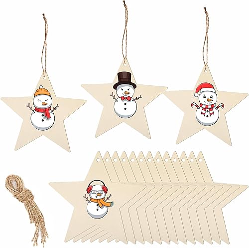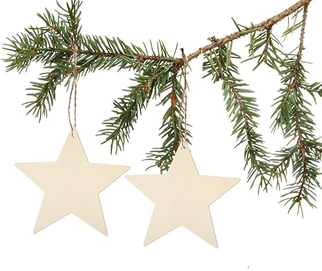 YIEUR Lot de 50 pendentifs de Noël en bois - Étoile - 8 cm - Disques en bois - Avec cordon de serrage - Décoration de sapin de Noël - Breloques pour décoration de sapin de Noël - Décoration de fenêtre