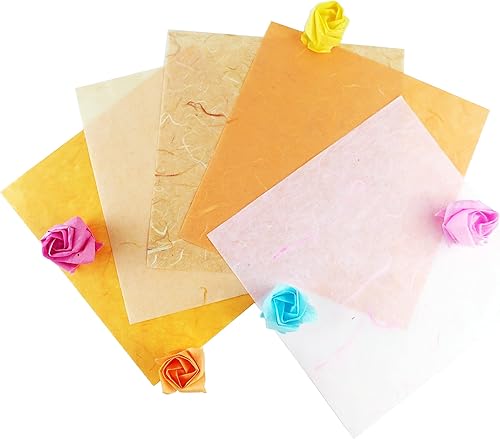 Lot de 50 feuilles de papier de mûrier - Couleurs unies - Motif origami - Fabriquées à la main - Pour fabrication de cartes et découpages - Jaune