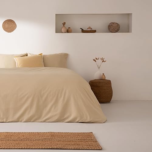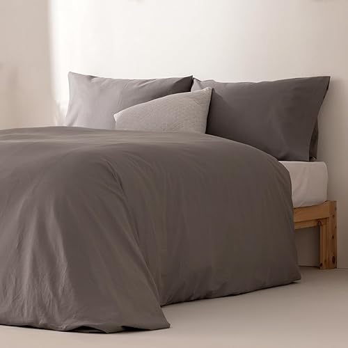 Underzy Parure de lit 100 % coton uni respirant et douce avec housse de couette de 180 x 220 cm et taie d'oreiller Gris foncé
