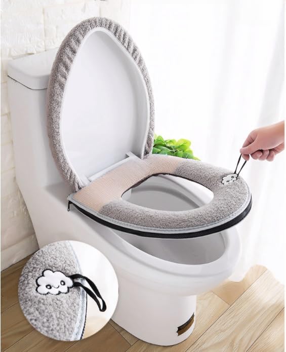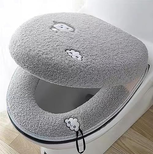 Qyjhska Housse de Siège de Toilette Multicolore Chaud - Protection Épaisse et Douce, Lavable et Compatible avec Tous les Sièges (Gris)
