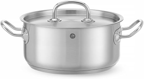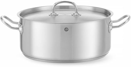 HENDI Marmite, basse, couvercle avec trous de vapeur, pot de cuisson, casserole, braisière, faitout, convient à toutes les sources de chaleur, lavable au lave-vaisselle, 1.5L, ø160x(H)75mm, inox