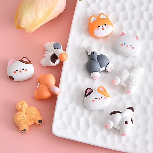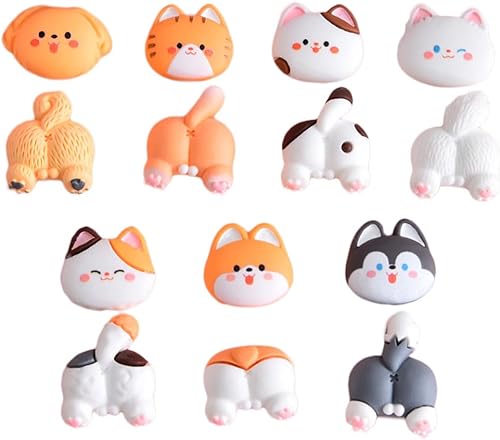 14 Pièces Breloques Résine Dessin Animé Pour Décoration Étui Téléphone Diy Bijoux Accessoires Animaux Chat Chien Kawaii