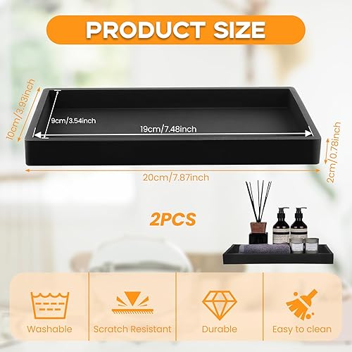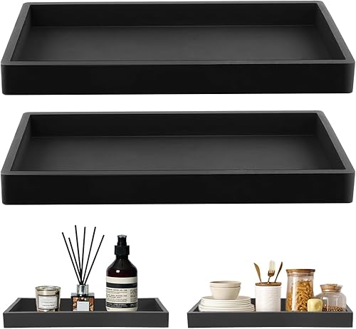 MOLENCO 2 Pièces Plateau Salle de Bain, Plateau Decoratif, Silicone Noir Plateau de Rangement Salle de Bain pour Salon, Chambre, Lavabo, Baignoire et évier de Cuisine