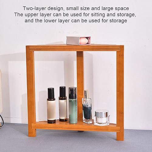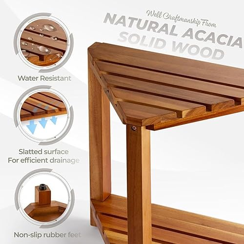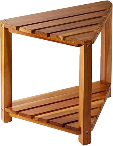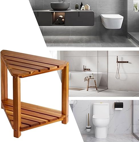 Gcerfby Repose-pieds de douche, tabouret de douche en bois d'acacia, pieds de rasage, petit tabouret avec étagère de rangement, 42/42/25,4 cm, facile à utiliser, polyvalent pour l'intérieur des petits