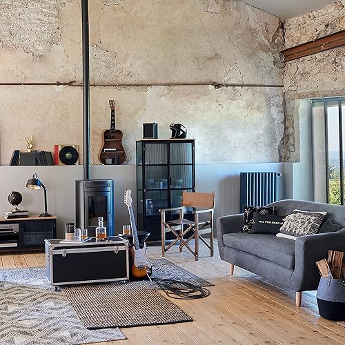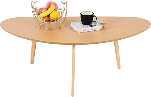 PHOENANCEE Table Basse Ovale de Salon, Table de manguier Massif et Pieds en Bois de chêne, Style Industriel, pour Salon, Chambre, 85CM(Noir)
