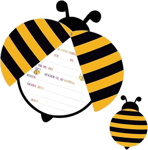 ZELAITE Lot de 10 cartes d'invitation pour anniversaire d'enfant, garçons, abeilles, avec 10 enveloppes (I)
