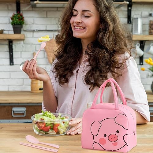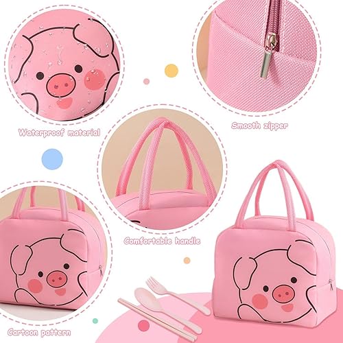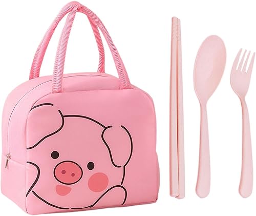 Sac À Déjeuner 1 Pièce En Forme De Cochon De Dessin Animé Et 3 Pièces De Vaisselle, Sac À Déjeuner Mignon, Boîte À Déjeuner Portable, Sac De Boîte À Déjeuner Étanche Et Isolé