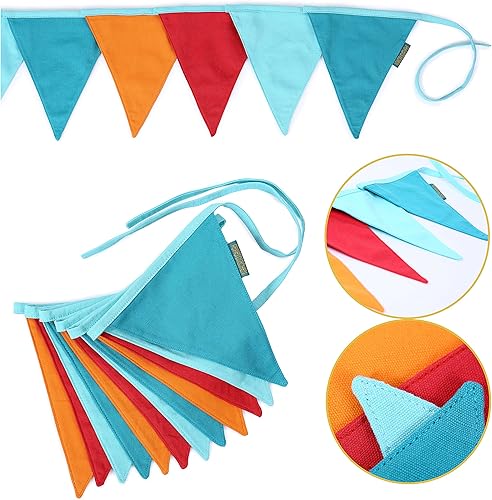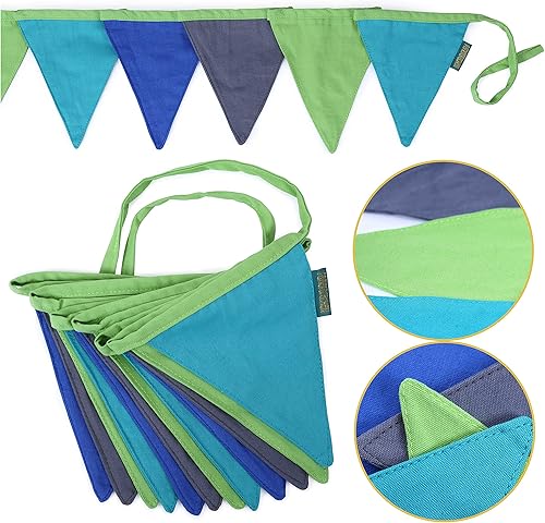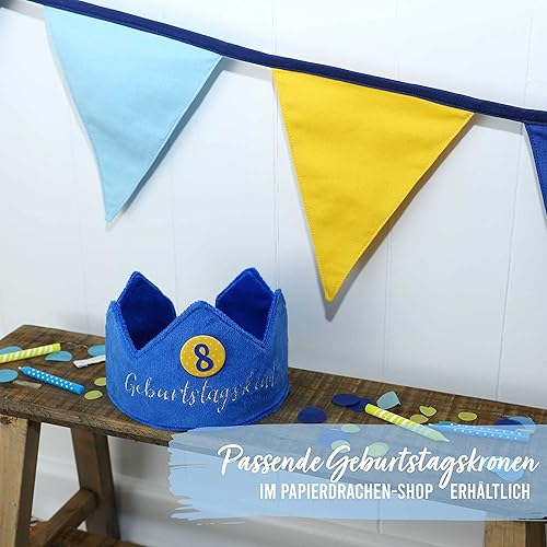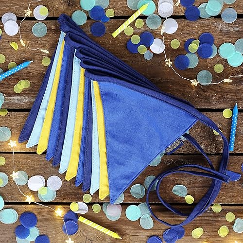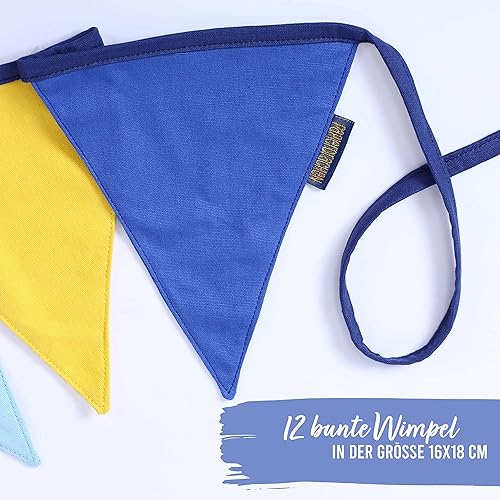 Chaîne de fanions pour décorer la chambre d'enfant | 3m de fanions 16x18cm chacun 12pcs | Bleu Jaune | Fanions Guirlande Décoration d'anniversaire pour enfants Set 4