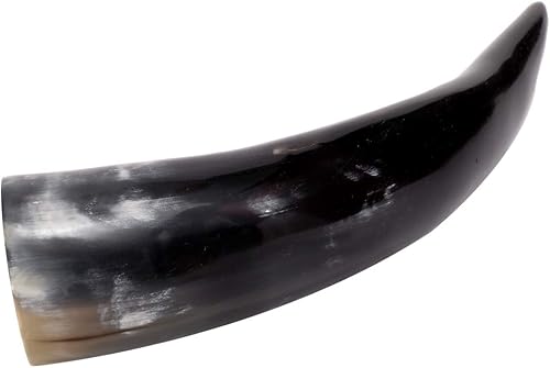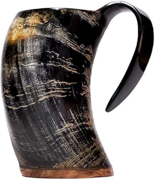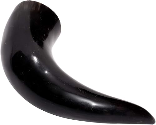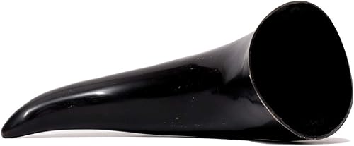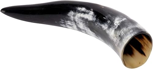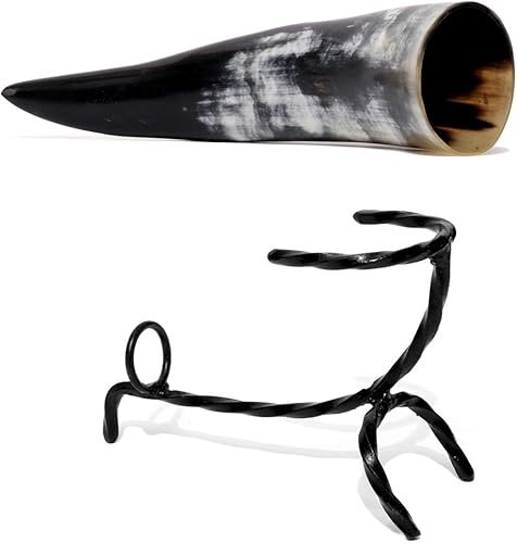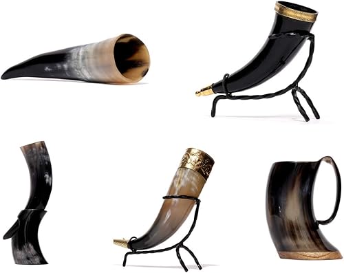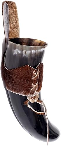 Brillibrum Gobelet design en corne de vache véritable polie avec poignée - Verre viking en corne - Chope à bière médiévale unique - 400 ml - Corne de vache avec support en peau de vache
