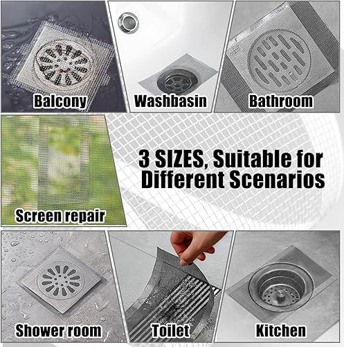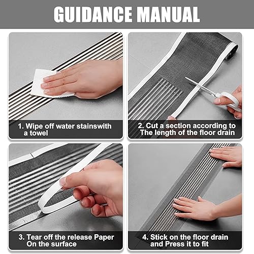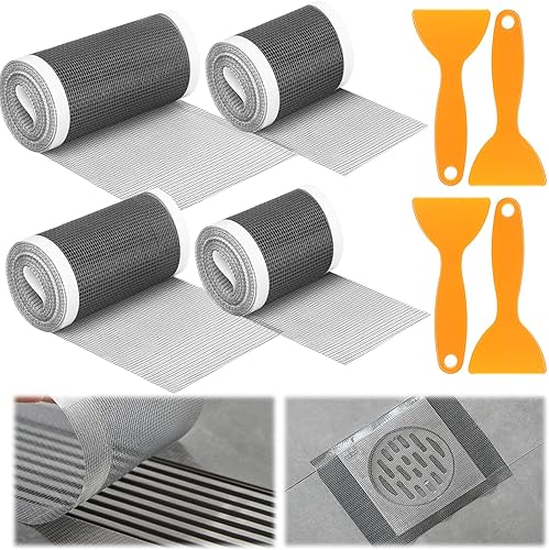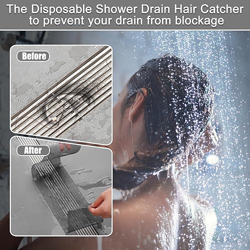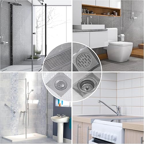 19m 4 Rouleau Filtre Cheveux Douche, 70mm/100mm/120mm Attrape Cheveux Douche Autocollants avec 4 Spatule en Plastique Attrape Cheveux Douche pour Cuisine, Salle de Bain, Balcon