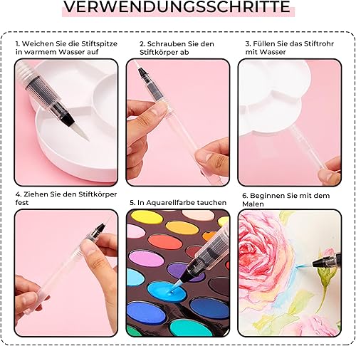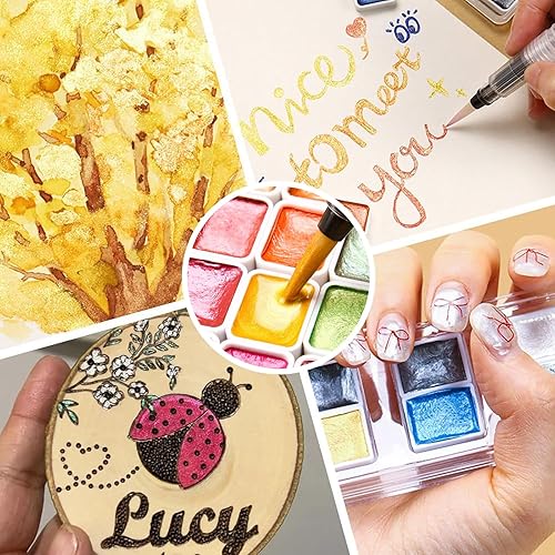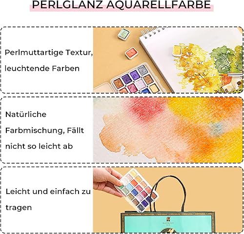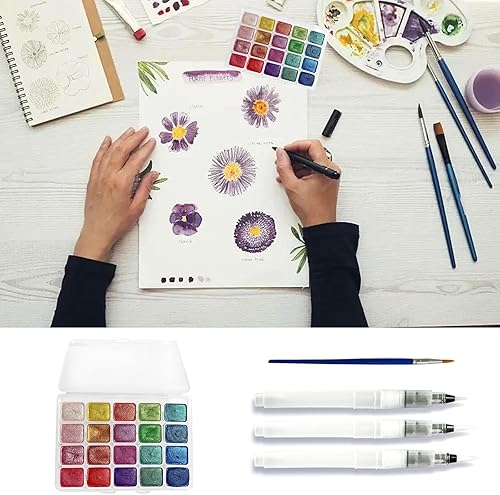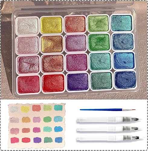 Barlone Lot de 20 peintures aquarelles métallisées à paillettes avec 3 pinceaux à eau, aquarelle métallisées, solides à paillettes, solubles et mélangeables, pour enfants, débutants et professionnels