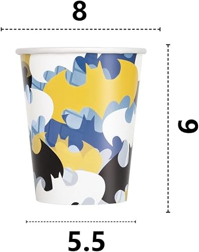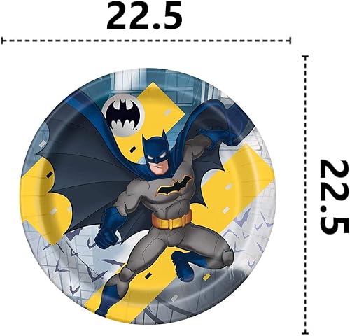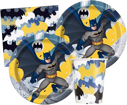 Isola Party Kit de fête d'anniversaire Batman respectueux de l'environnement (16 assiettes, 16 tasses, 16 serviettes)