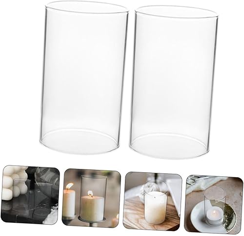 ORFOFE 2pièces Support De Bougie Transparent Verre Lot de Bougeoirs Cylindriques pour Bougies Pillar Anti-Vent Décoration Élégante pour Maison Et Événements Spéciaux