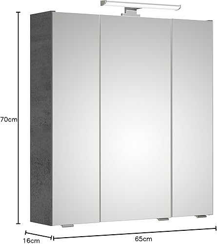 Pelipal Armoire à Miroir, Bois d'ingénierie Mélamine, oxyde Gris foncé, 70x80x16 cm